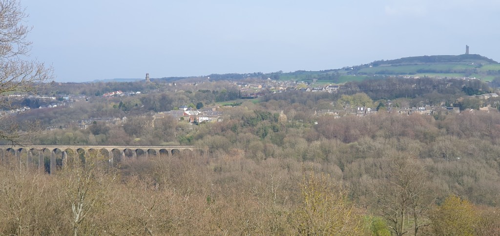 In preparation for such a repast the two of us stretched our legs and burned off a few calories by wandering around a local beauty spot. Beaumont Park is on the edge of the valley looking out towards Castle Hill and a place called Armitage Bridge. It was the nearest I got to a railway today as there’s an impressive viaduct below which allows Penistone line services to cross the gap.