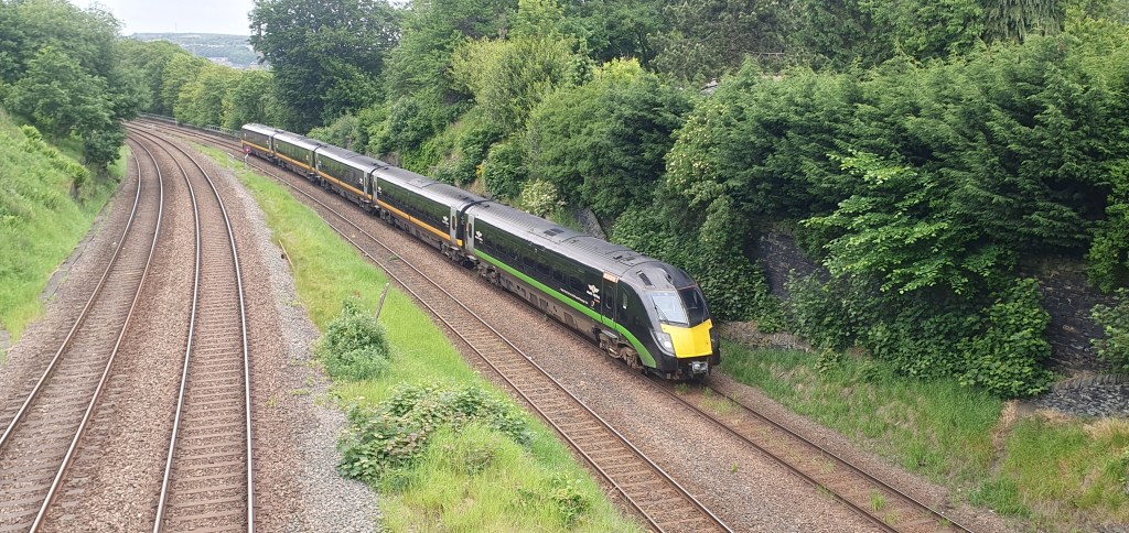 Rather conveniently, the bus stop I was walking to sits on the main road atop Salterhebble Junction where the lines from Halifax to Sowerby Bridge and Brighouse part company. I was just in time to get this shot of a Grand Central service heading for London