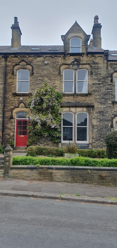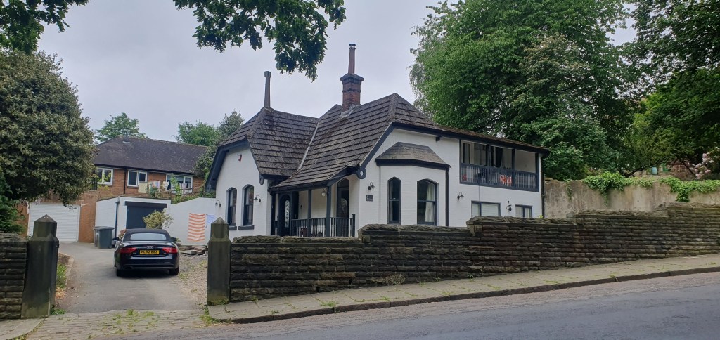 Having arrived in plenty of time I decided to go exploring. Whilst Huddersfield town centre is run-down and rough nowadays, this area is still rather posh. Down the many tree-lined streets and often hidden behind thick hedges or Rhodedendrons there’s a mix of housing, from soot-stained monumental Victorian piles to smaller Edwardian elegance and more modern stock from the 60s through to the present day which have been built on land freed by demolition of some of the old piles which must be a nightmare to heat and light in this era. Here’s a selection of what I saw.