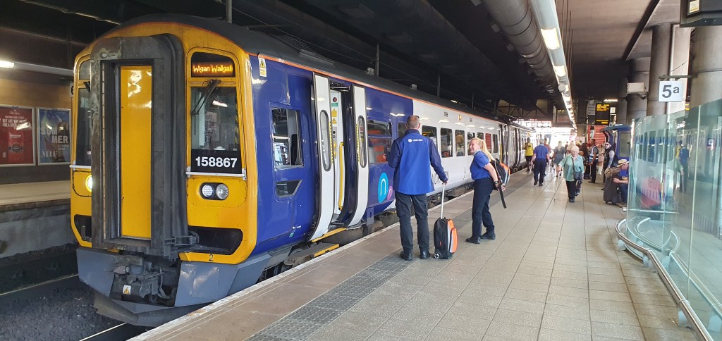 I made a swift cross-platform interchange to catch one of Metropolitan-Cammell’s finest modern products in the shape of a Northern Class 156 heading for Stalybridge. It’s running late but no matter as I’m in no particular hurry.