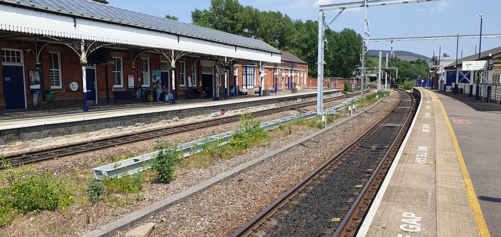 Having finished with pictures and emails earlier and with the weather still cracking the flags and reaching records for the time of year here in the Calder valley I’ve ventured out for a few hours to head West and another valley. Right now I’m on Northern’s 13.02 from Sowerby Bridge to Manchester Victoria. It consists of a single 2-car Class 158 with all available windows open – which suggests the air-conditioning is kaput. It’s certainly warm in here – and noisy. On the table opposite me I have two young people knocking back the Pimms and G&Ts. I wouldn’t mind, apart from the fact they both suffer from inarticulacy. Every 3rd word is ‘like’. In the case of the young girl it’s almost every second word, which is extremely repetitive when she’s talking 90 to the dozen. Even their ‘posh’ accents can’t disguise just how limited their vocabulary is. To deaden the sound I’ve resorted to headphones and the ability to drift away on a music cloud. In this case memories of an equally warm summer day in back in 1978 when I saw Genesis at the Knebworth festival. Oh, God – I’ve just realised that was 45 years ago!