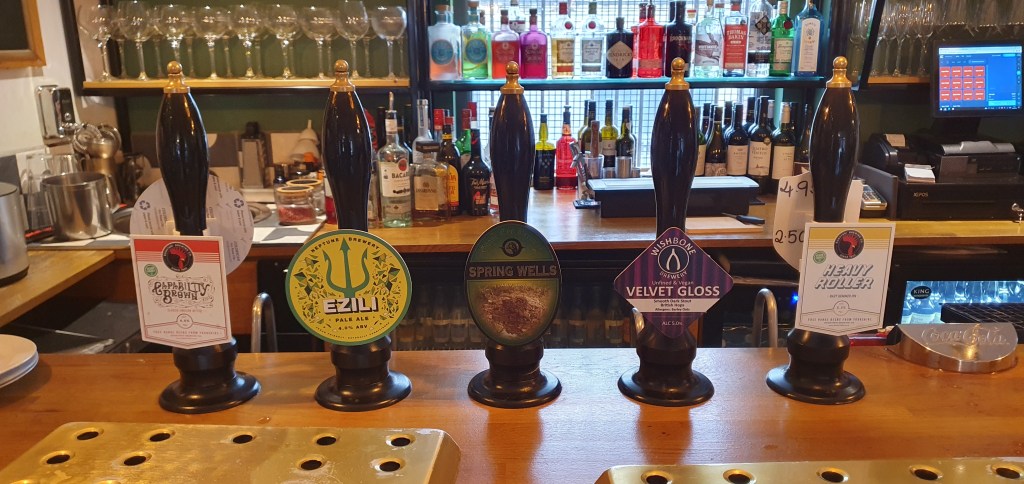 I stopped off in Halifax en-route to home for a swift libation at the Meandering Bear, a bar in town where some neighbours work. As they were both in I ended up chatting and the swift beer turned into two. Oops!