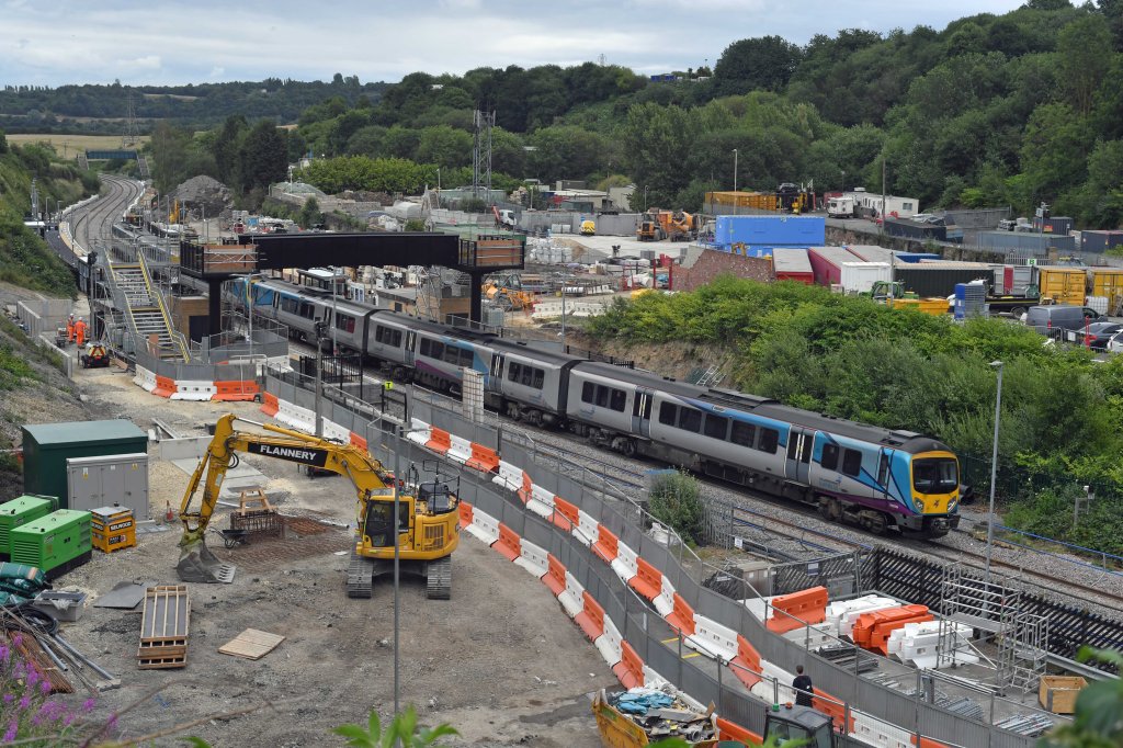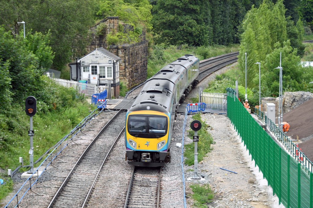 Things haven’t entirely gone to plan! After a brief stop at Dewsbury to upload pictures and avoid showers I caught a TPE service to Huddersfield and back to check out TRU work as things change on a weekly basis. At the moment a worksite’s being set up West of Deighton where two rail overbridges are to be replaced. The new signalling that’s been commissioned streches East from LNW junction by Ravensthorpe to beyond Morley. Huddersfield itself remains little changed – at the moment. I was only intending to change trains at Dewsbury in order to head back to Brighouse but I got caught up in 30 plus minute delays due to kids trespassing on the lines I’d only just traversed. Now I’m finally on a delayed Northern service heading in the right direction.