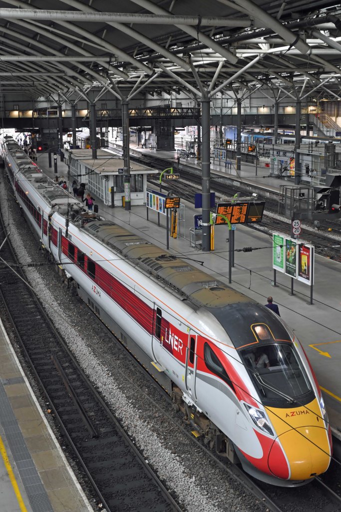 I’m back in Leeds and waiting for the 17:43 to Manchester Victoria to leave. It’s remarkably quiet in the front unit but I suspect that’s because it’s a ‘poets’ day in June. The station’s busy, but that’s with people heading into the city on a night out rather than returning home.