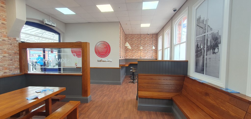 Another washout. The rain just won’t stop! My trip down the Durham coastline has been shrouded by low cloud and the sort of rain that has you soaked in minutes. It’s a shame as I’d have lacked to have seen more of Hartlepool than just the station – althogh to be fair, that has some interesting features and the work to reinstate the 2nd through platform is coming on well. Both the Station cafe and real ale pub were closed so I stayed long enough to take some pictures and enjoy the warmth of Grand Central’s well appointed lounge before retracing my steps.