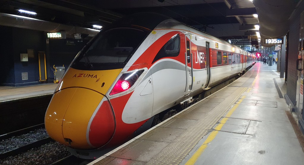 Leeds station was just as quiet as my Northern train tonight – although the fact it was chucking it doen with rain (again) may have had something to do with it. We’ve certainly had our fair share of the wet stuff over the past week. I was only passing through so didn’t even bother getting the camera out. Instead, I headed for the warmth of the LNER ‘set’Azuma’ set sat in the platform which was ready to form the 19:45 to Kings Cross.