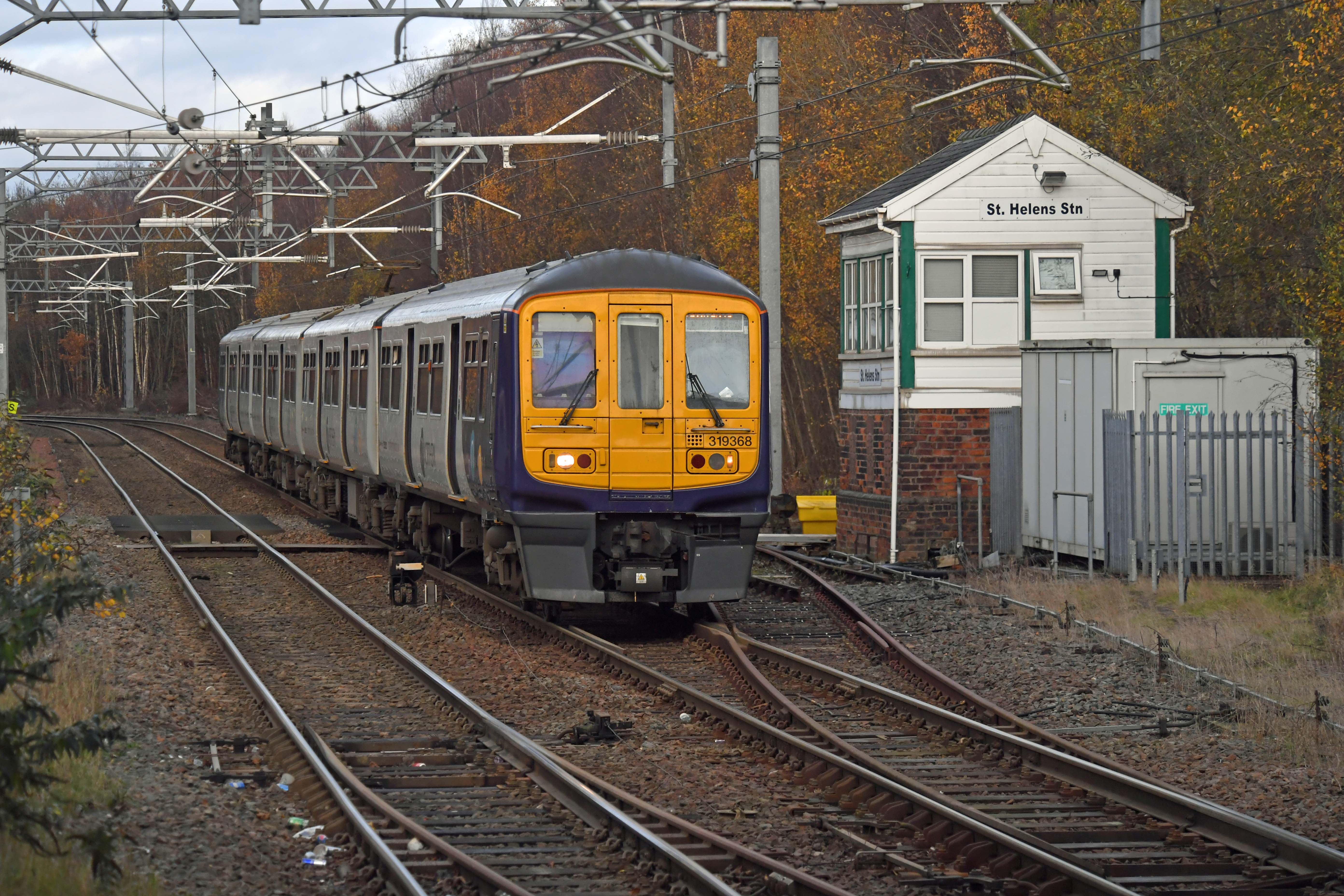 A journey by train through the Calder Valley’s a lovely experience this time of year due to the autumnal colours from the woodland covering the valley, although last weeks high winds and rain have taken their toll, dropping a huge tonnage. My train remained quiet all the way to Rochdale where (as always) we filled up with dozens of folk heading into Manchester. I’m resisting the temptation to join them. Instead I’ll stay onboard all the way to Wigan where I can connect with the main diagrams (Liverpool, Wigan, Preston and Blackpool) the 319s are allocated to nowadays.
