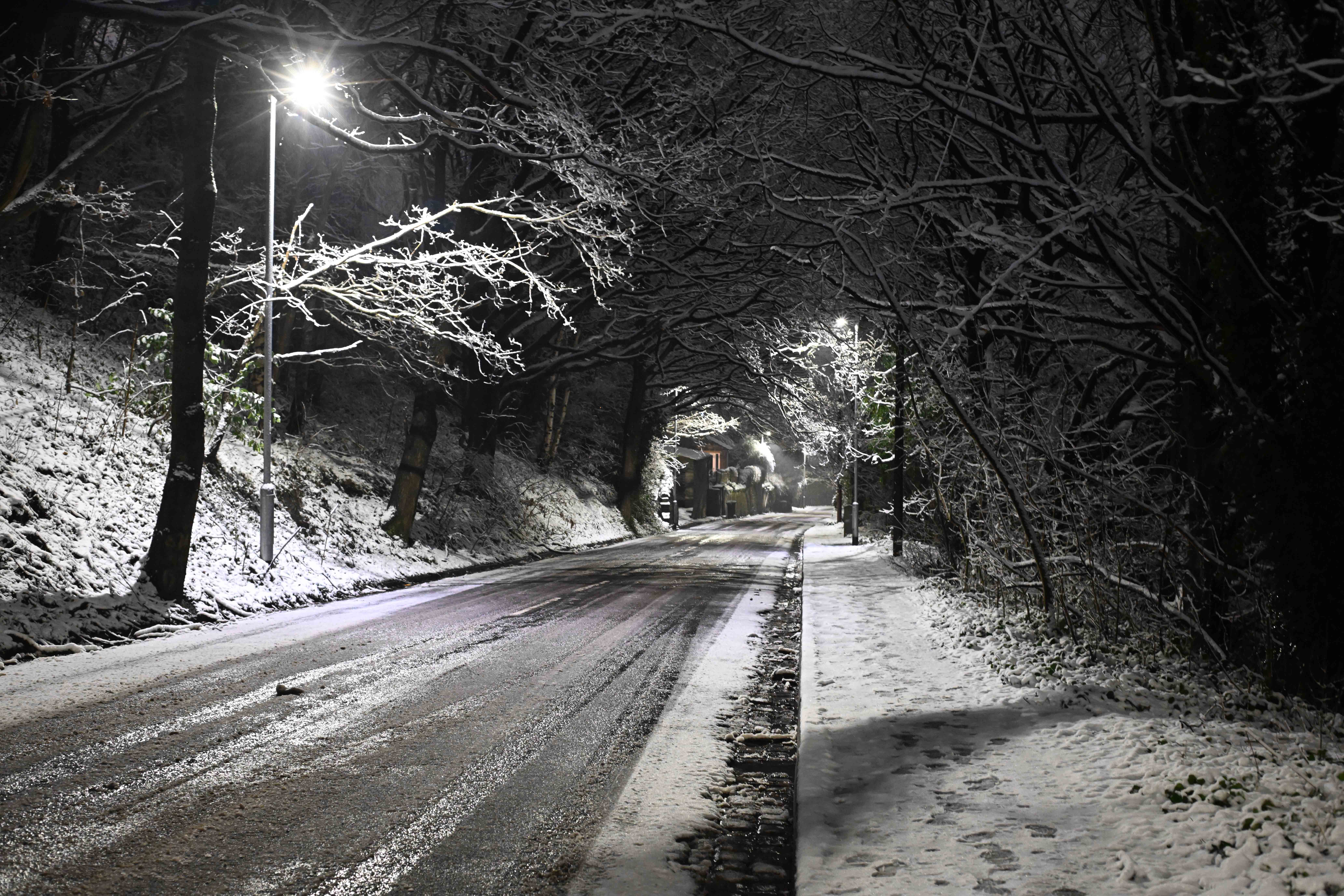 Something I’ve learned to appreciate living here in the Pennines is just how much of a difference a few hundred metres in height can make – especially when it comes to snow. By the time I got down into Sowerby Bridge conditions had changed. I was faced with more miserable sleet and trees completely clear of the white stuff. I’d half-hoped to recreate the picture I posted a couple of days ago but there was no chance. Sowerby station had a light dusting but even the ballast wasn’t covered, making pictures pointless. There was nothing to do for it but slog my way back uphill into the snowline. Here’s a couple of pictures to illustrate the contast.