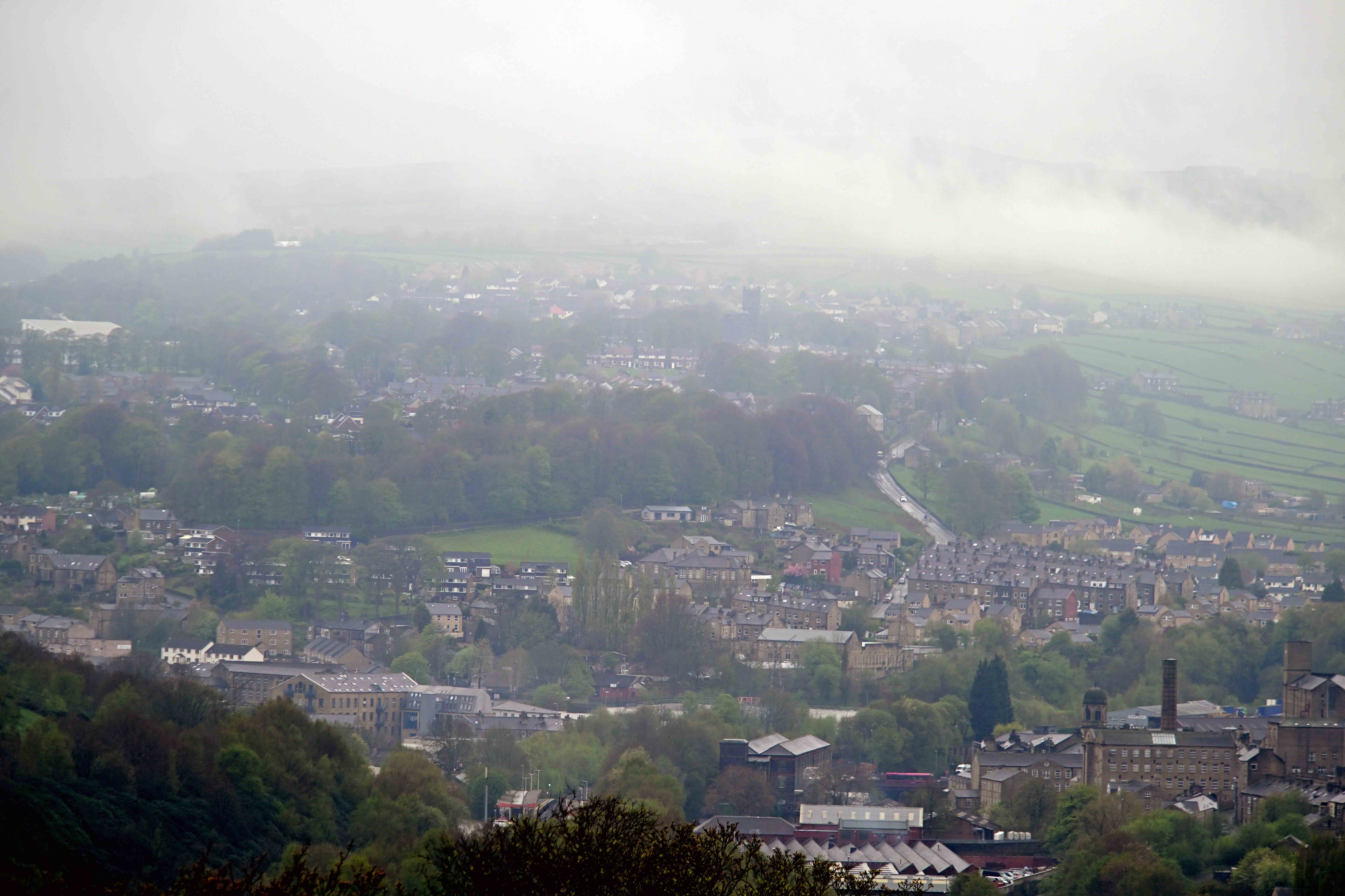 Finally, I’m on my way. As you can see from this picture, the weather hasn’t improved here in the Calder Valley. The Wainhouse Tower in the background (we live just beneath it) is disappearing into the clouds. I can only hope traversing the Pennines does it’s usual trick to bring better weather.