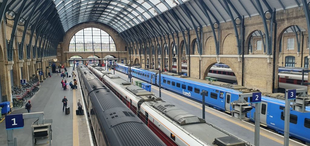 Having found the wifi wasn’t working on my GC set, and having something I wanted to get shots off at Doncaster I opted to change trains. This gave me just long enough to photograph what I was after, grab some library shots of the GC train and crews swapping over, then board the following LNER service. I’m now chasing the Voyager which I’ll catch up at Kings Cross! The 10-car LNER service (ex Harrogate) is the train I was originally aiming for at Leeds. It’s packed full of families and groups en-route to the capital although I have managed to bag an unoccupied seat that had been reserved from Wakefield. The wifi’s working, so I’m quickly blogging from my laptop and catching up on some work before switching off again.