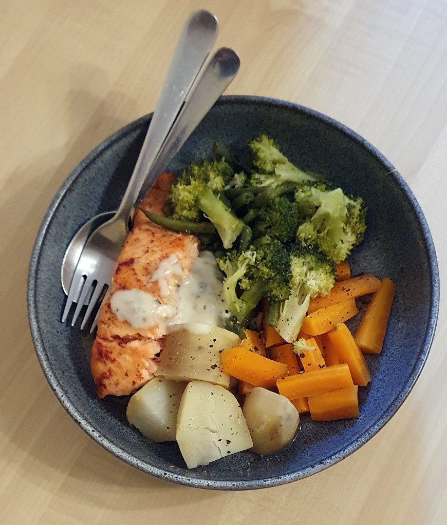 Right, it’s time to go. All that remains is to leave you with today’s picture. But what to choose? I’m leaving you with a food shot – tonight’s supper. This is hardly salad weather so Dawn decided to cook the pair of us something a little more substantial…