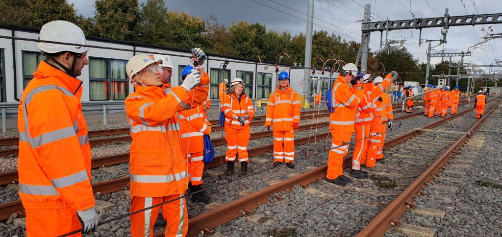 Well, that was an informative and challenging day! I’ll add a few pictures later but what happened was the people who joined the challenge were split into four teams in order to gain hands on experience of assembling overhead equipment from drawings. After that they had the opportunity to get hands on with various tools and also learn about more aspects of the equipment used to electrify the railway. Some of those taking part had never been trackside before.