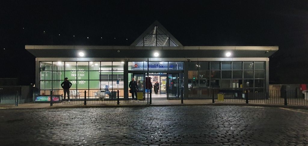 The last leg. Rather than changing at Leeds I’ve had a brief break at a very quiet Doncaster station before catching the following Grand Central service which is mow carrying me directly home to Halifax. I *could* have chosen to use it from Kings Cross but I saw it was a veritable sea of reservation labels. So, choice of a 9 car on which I cold do some work, or sit in the vestibule of a 5 car. A bit of a no-brainer really.