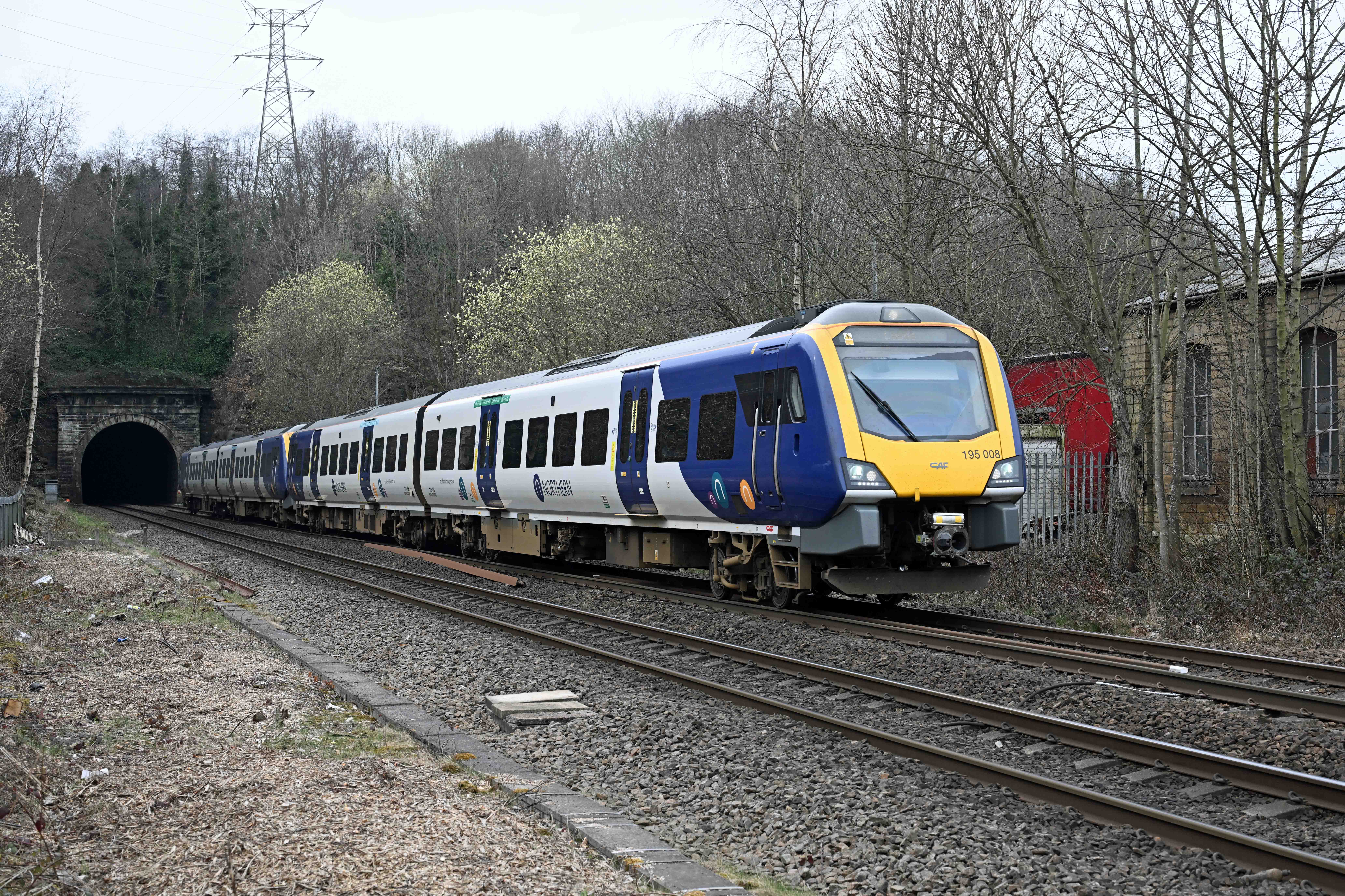 Afterwards we drove down into Sowerby Bridge in order to pick up some shopping. As I was banned from venturing inside I retreated to the car-park fence to get a couple of pictures. You see, Tescos is built on the site of the old Sowerby Bridge railway good yard and the car park back onto the railway. Last year Network Rail cut back all the trees and shrubs that had obscured the view and opened up new picture possibilities of trains leaving the 657 yard long Sowerby Bridge tunnel. Like this;