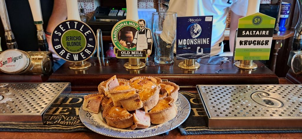 The pair of us have abandoned West Yorkshire and the Pennines in favour of a weekend by the seaside. We’ve travelled West to Southport, the town where I grew up in and where the rest of my family live – some of whom we’re seeing this weekend. It’s also chance for Dawn to discover more of what the town and surrounding West Lancashire plain have to offer. We stopped off for lunch en-route, calling in at Parbold, a village on the railway line from Wigan to Southport. It’s a pretty little place that’s bisected by the Leeds and Liverpool canal as well as the railway. There’s a lovely pub next door to the canal called the Windmill, named after the old sail-powered cornmill which it shelters in the shadow of. Both the pub’s beers and food are worth sampling. I enjoyed a decent pint of Moorhouses ‘White Witch’ and the fish and chips (which Dawn also plumped for). The fish was very good and the batter just right – as were the portion sizes. We felt stuffed afterwards!