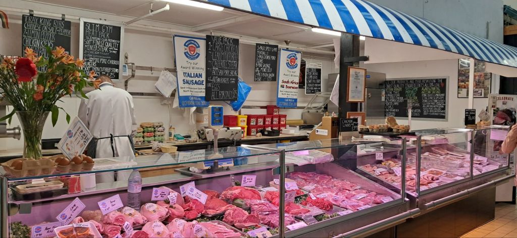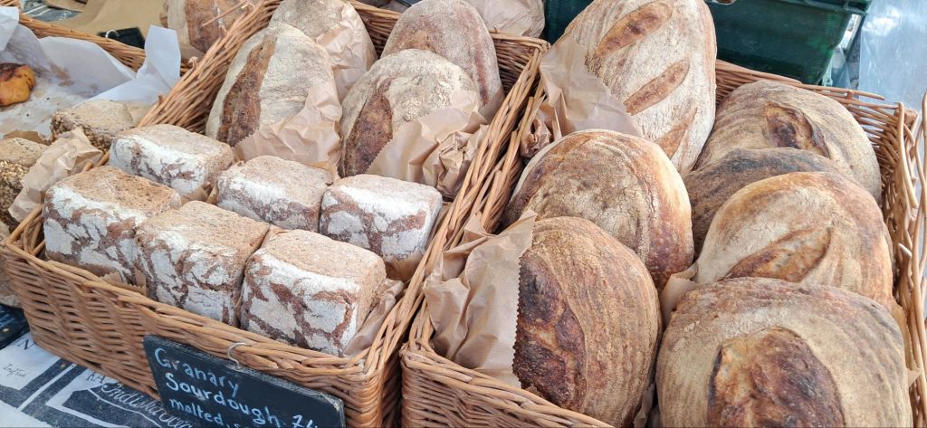 Today’s been our last full day, so the weather’s taunted us with the promise of better things – if only we could stay. We’ve made the most of it by walking into town to hit the market, which has become a firm favorite. Whilst the indoor section remains unchanged Saturday’s the day the outdoor section changes from bric-a-brac to food, with a wide range of fruit and veg, artisan breads and cakes and other edible delights on offer.