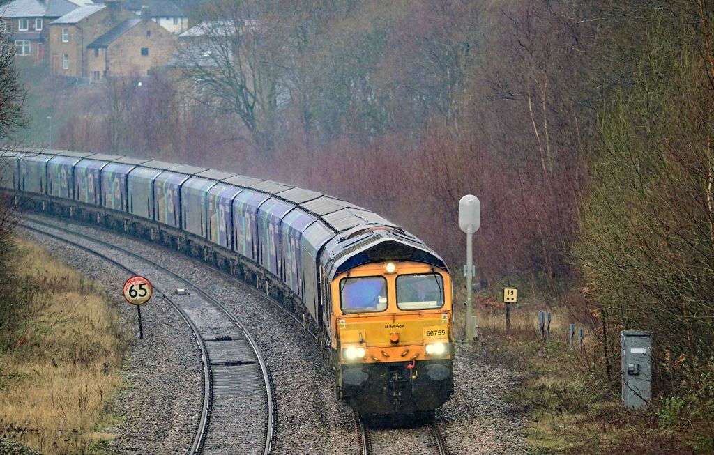 Typical! Just as we’re packing up to return home tomorrow, the weather picks up! Friday started optimistically enough. The skies were cloudy but the weather was dry, so I headed out with the camera in the hope of photographing some different railfreight flows. I should’ve know better! Almost as soon as I got to my favoured location atop a bridge overlooking Hall Royd junction the rain and sleet started. I managed a couple of shots, including this one of a Liverpool Docks to Drax power station loaded biomass train before the light was so low and the rain so miserable that I gave up.