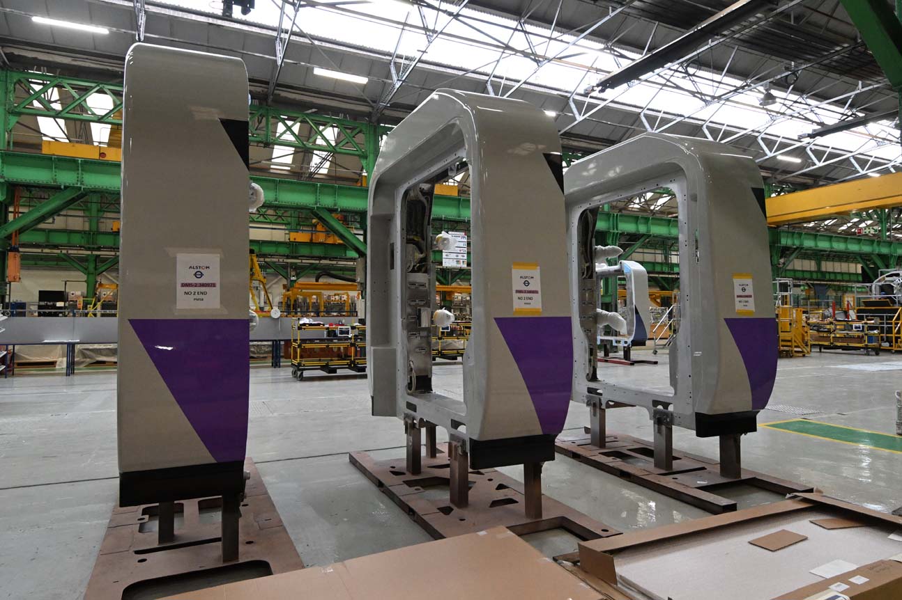 10 new 9 car Class 345 ‘Aventra’ trains for London’s Elizabeth line are currently under construction at Derby by Alstom. Ordered in June 2024 for delivery in 2026 the order saved the Derby site from closure due to a gap in orders before the start of building trains for the delayed and truncated HS2 project.
