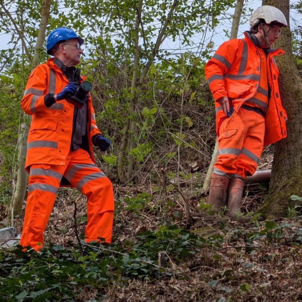 My morning has been spent on a steep embankment where McGinley contractors have been busy digging boreholes to allow the condition of the embankment to be monitored. You may think the Victorians were great engineers, but you’d be shocked if you knew how they built railway embankments. They’re often impossibly steep and constructed out of any old rubbish, which is why they slip, so need monitoring. I was out with a team doing exactly that. It’s not the easiest of assignments due to the ground conditions.