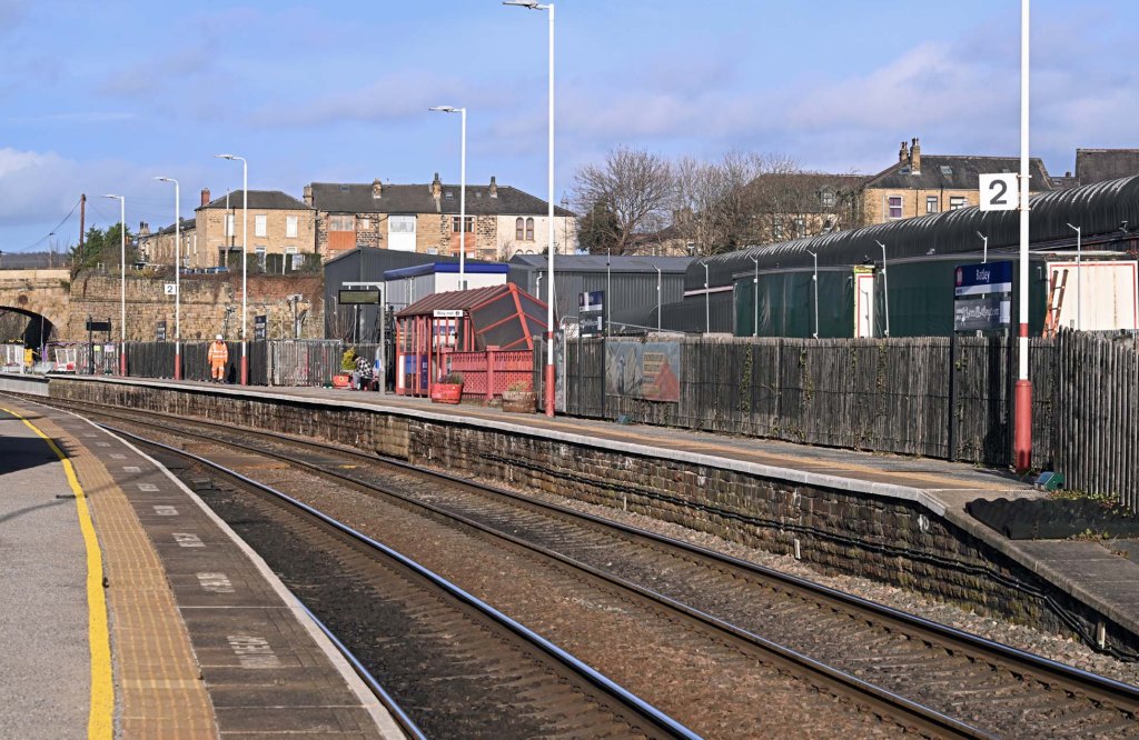 The sidings between the station and old railway works are empty – apart from a massive pair of Ainscough hire cranes. I can only assume they’re here to remove the decaying footbridge that linked the works with the outside world by crossing above the station.