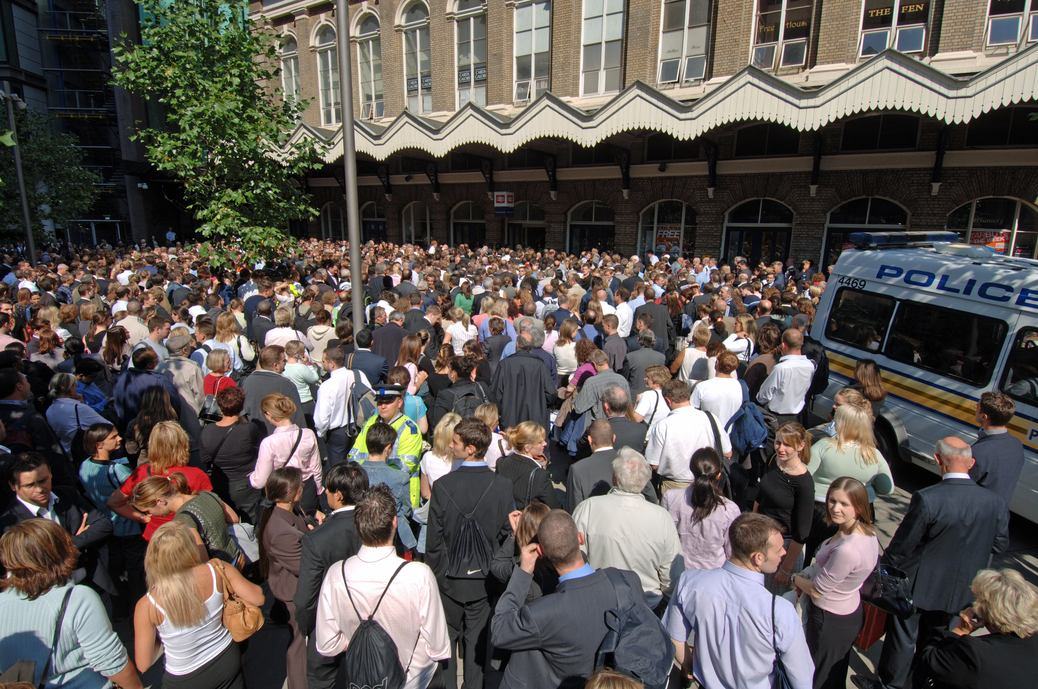 With no tubes & buses running, people made their way home as best they could. Thousands of people waited patiently outside Fenchurch St station. There was no fuss or panic, despite the obvious concern that such a crowd of people made an easy target.