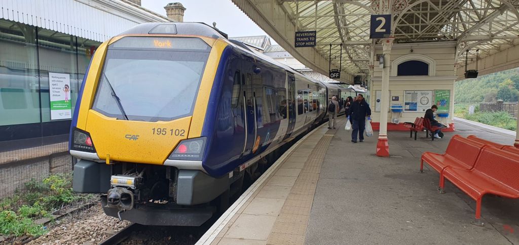 Having walked to Halifax on a gloomy and rather chilly morning I’m aboard my first train of the day, Northern’s 09:54 to York. As usual, it’s a well-used train.