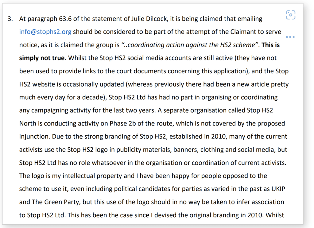 During the injunction proceedings Rukin was named as a defendant and was forced to admit that StopHS2 had given up campaigning against HS2 in 2020!
