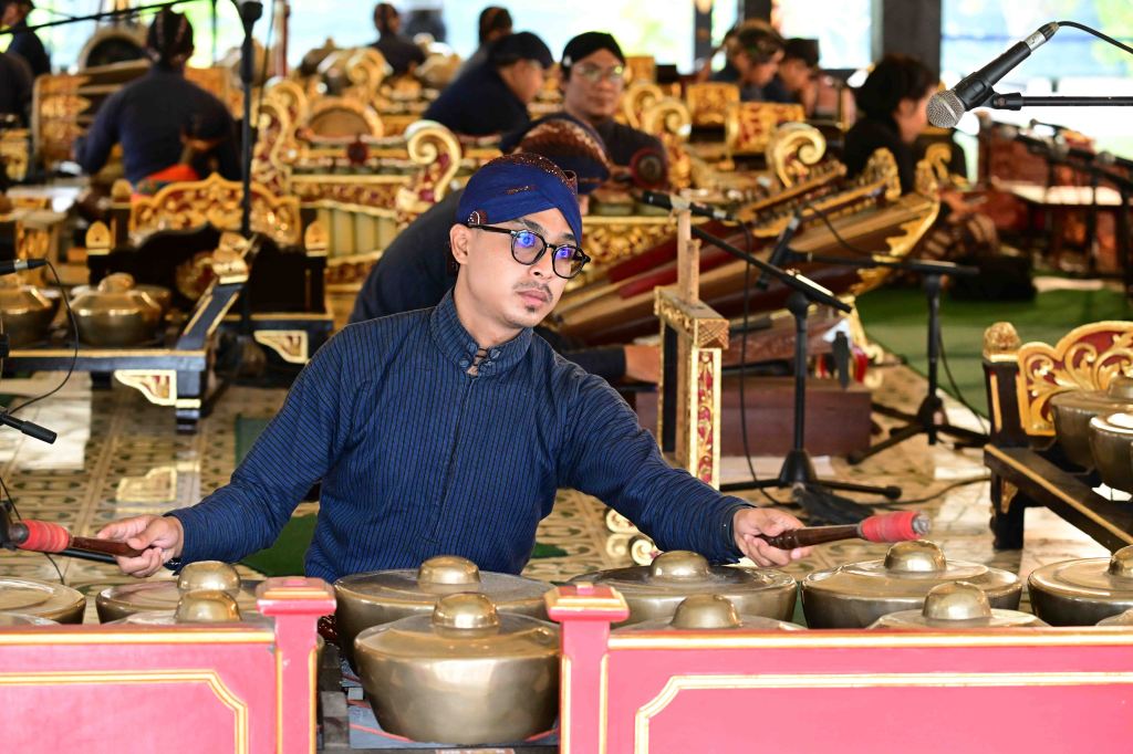 Today we visited the Kraton, the palace of the Sultans of Yogyakarta. It’s an impressive, sprawling place where it’s easy to get lost in the multitude of courtyards. The buildings are impressive, but what was even more so today was listening to the gamelan musicians playing. Javanese gamelan music is much more formal than that of Bali (which is far more exuberant) and – as you’d expect from musicians playing in a palace – it’s more formal. That said, it’s also lovely to listen to. Here’s one of the shots I took of them playing.