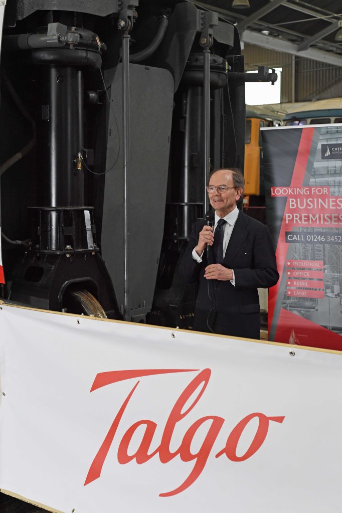 Carlos de Palacio, President of TALGO (seen here) handed the vehicle over to Councillor Tricia Gilby, Leader of ChesterfieldBorough Council.
