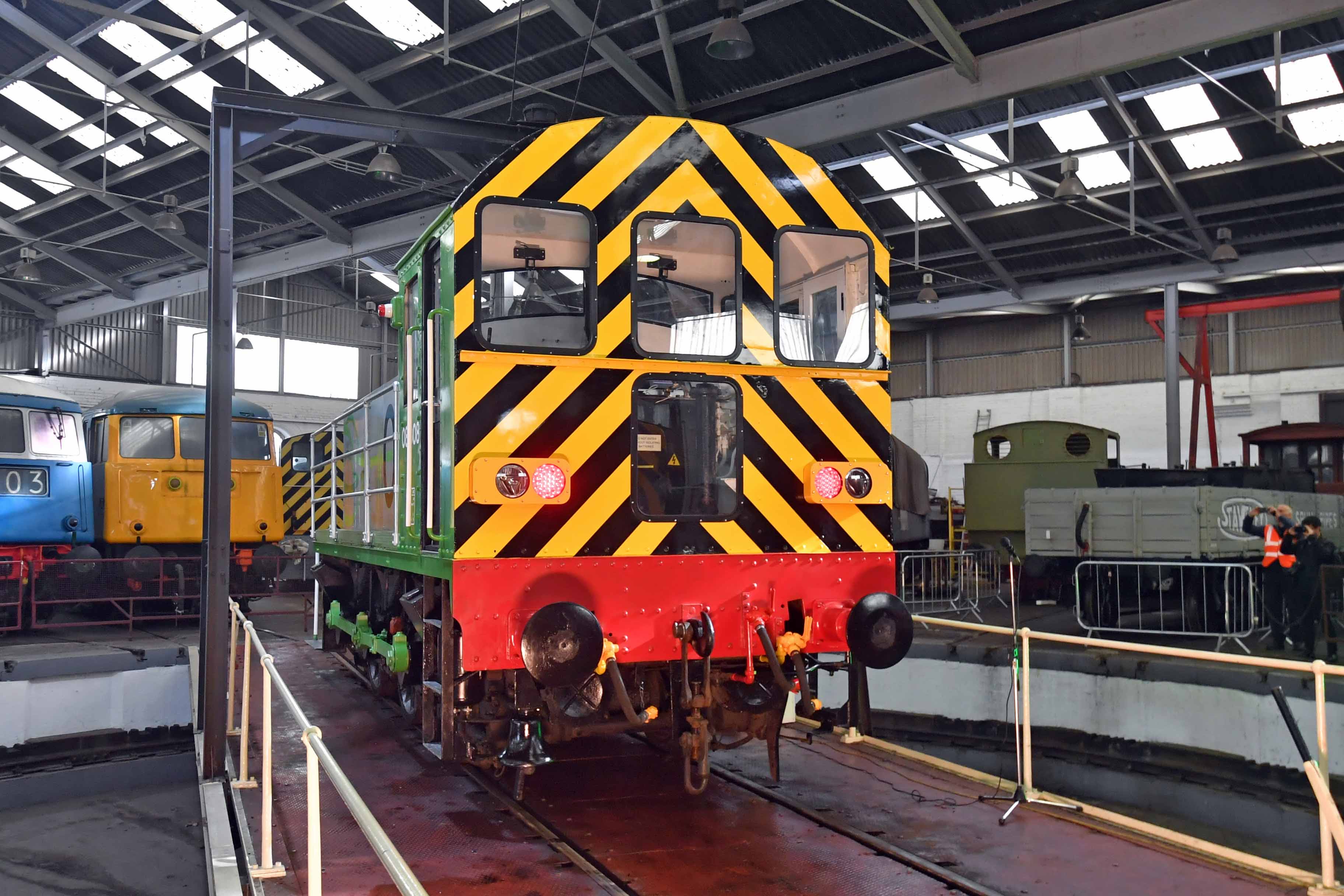 On Thursday at Barrow Hill roundhouse near Chesterfield, Positive Traction showcased their new Class 08 shunting locomotive which has been converted from diesel to battery electric power, making it free from carbon, NOx and particulate emissions. The re-engineered locomotive (08308) has several other improvements and refinements, updating an English Electric design that dates back to 1934.