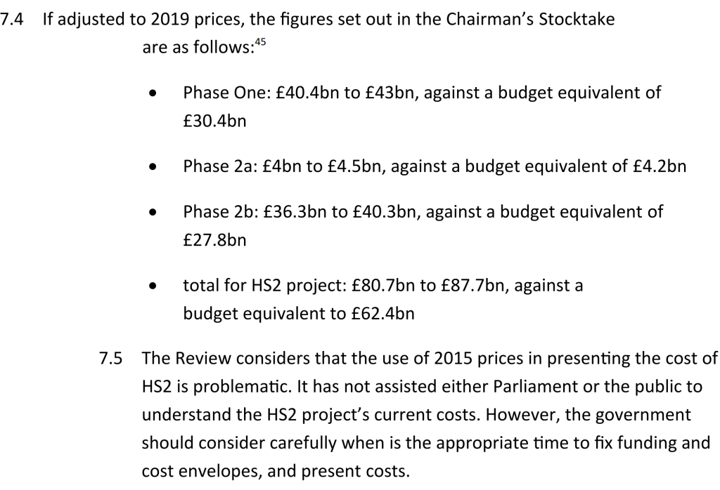Eh? Oakervee never said any such thing! The only time the £106.6bn number was mentioned was to specifically REJECT it – as anyone who’s actually read the Oakervee review would know. Here it is in in black and white on page on page 60.
