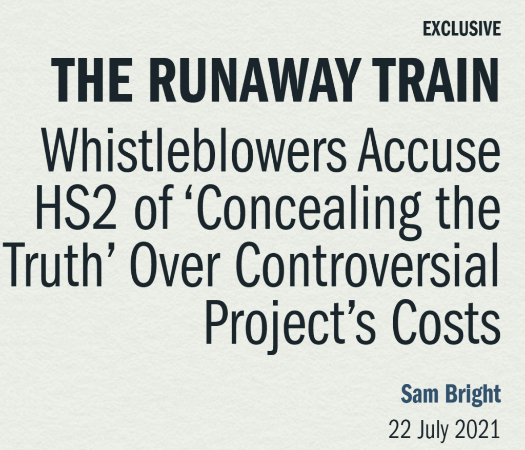 Here’s a recent article on HS2 entitled “the runaway train”. It was written by Sam Bright and billed as an ‘exclusive’.