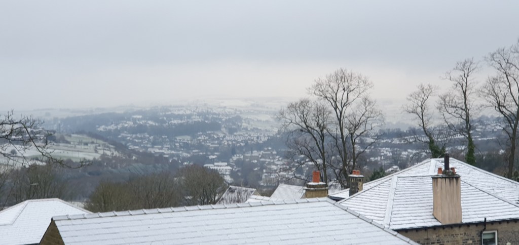 What I get up to tomorrow depends on the weather, which brings me on to today’s picture. Here’s how Bigland Towers has looked in the past (2021) when the snow’s arrived. And no, that’s not our lofty eyrie in the background – that’s the Wainhouse Tower!