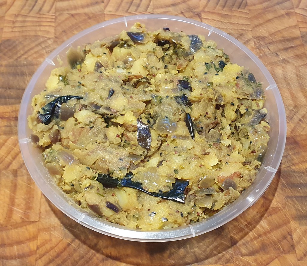 All prepared. The ingredients for Bombay potato.The finished product – and just as good as I remember it.Tarka DahlCucumber curry. I posted the prep’ for this a few days ago.