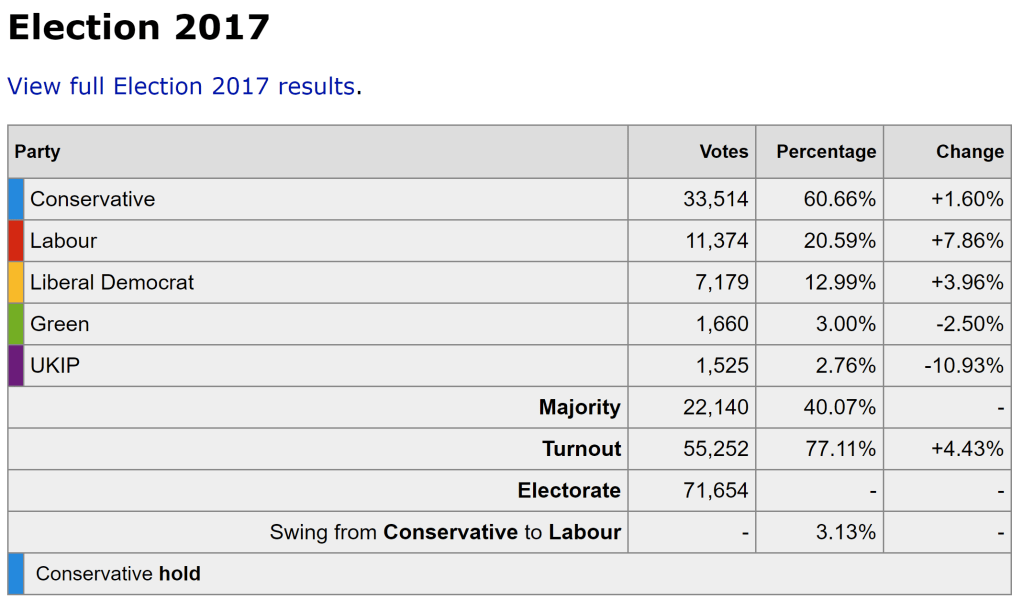 As usual, we’re seeing all sorts of claims about why this has happened. Many are trying to blame it on purely local issues like HS2 and the proposed reform of planning regulations. Good old Nimbyism in other words! What none of these commentators can explain is – if HS2 really was the issue, why now? The project has been around since 2009 and never lost the Tories the seat, even when UKIP were around and stood on an anti HS2 platform. Take a look at the 2017 general election results, the last time UKIP stood. Despite HS2 having gained Royal Assent earlier that year, UKIP’s share of the vote collapsed. They went from 2nd place in 2015 with 7218 votes down to 1525, a fall of just under 79%. In fact, the swing that year was from the Tories to Labour (who also endorsed HS2).