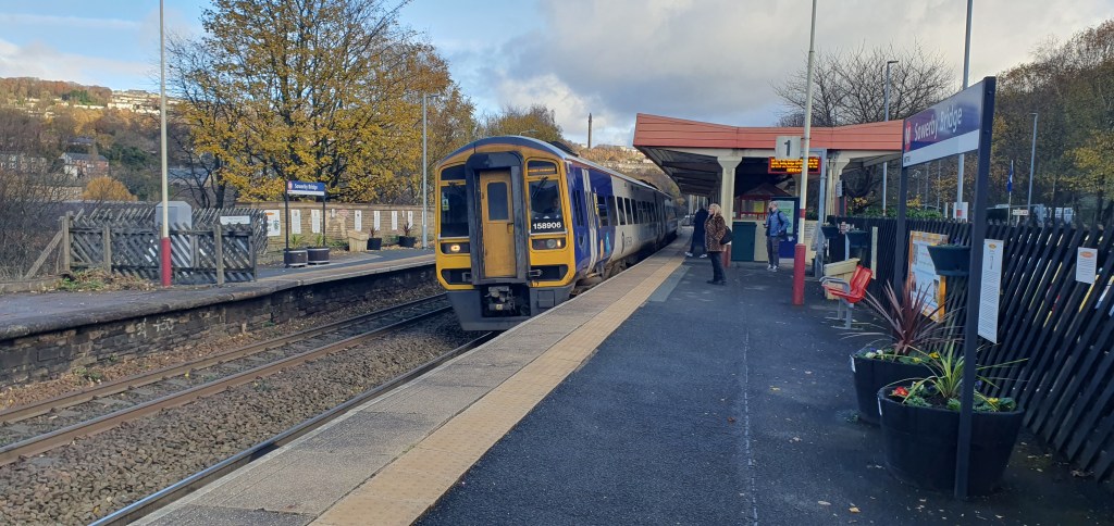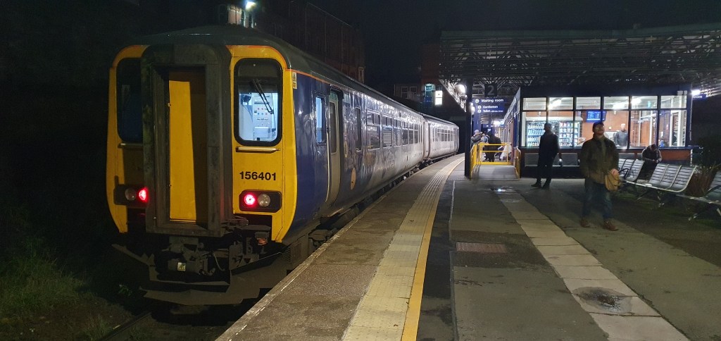 I’m on the last leg now. After changing at Salford Cresent only to find the next two trains heading across the Pennines were cancelled I caught a Rochdale bound stopping service then connected with a Leeds train. It lessened my wait in the cold as the night’s turning chilly. I have to admit, I’ve lost patience with Northern’s PIS messages excusing cancellations as “short-notice timetable changes”. It’s akin to a politicans weaselling as it’s the fery defination of a cancellation but without any explanation as to *why*…