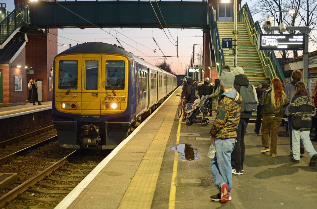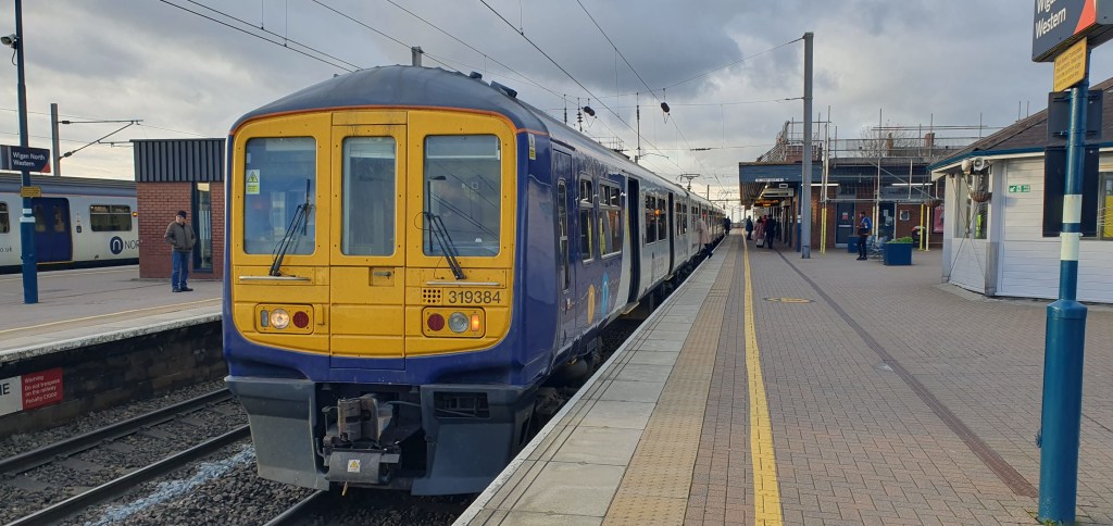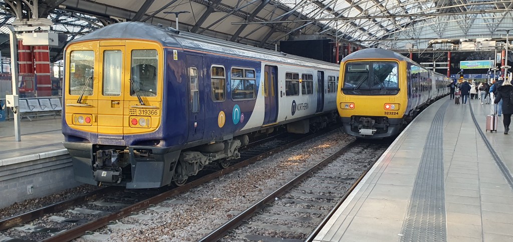 That’s not me you understand. That’s the remaining members of Northern’s class 319 fleet! Whilst most have gone for scrap and the last few have had no booked work since the December 10th timetable change the trains are still appearing in traffic. The transfer of newer CAF built electric trains from the Yorkshire (East) side of Northern’s domain has been delayed, so the 319s are being pressed back into service on some of their old routes from Liverpool only now spreading their wings as far as Manchester Airport services.