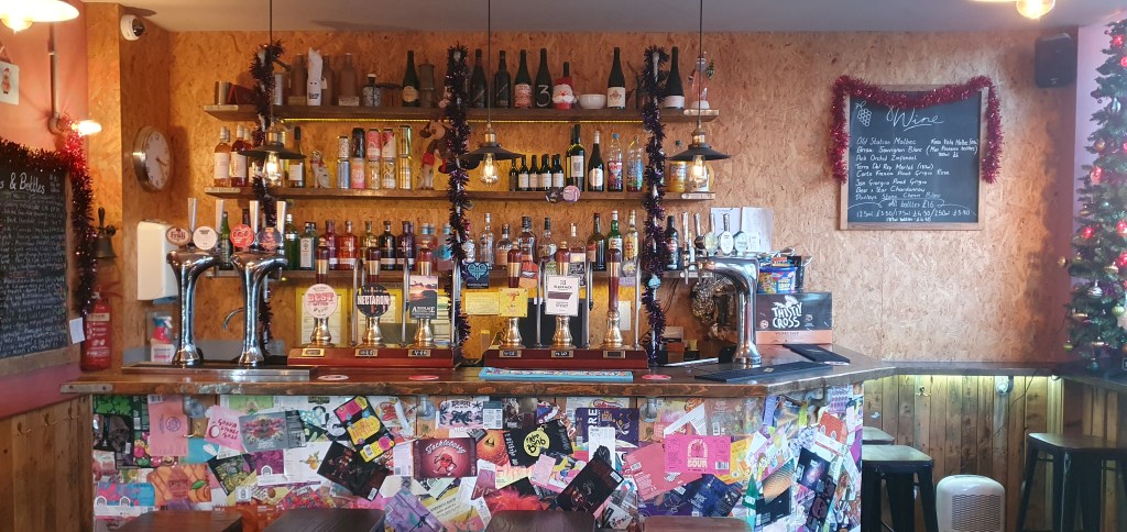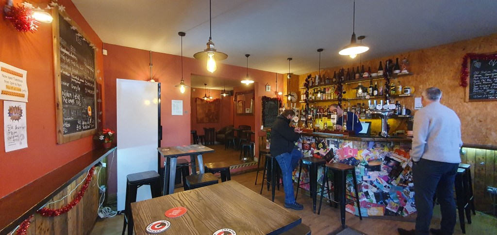The place has changed a bit since then. The goods yard was torn up in the 1970s and only one of the original station buildings remains. I’d planned to try and get some pictures here but there’s building work going on and trackside views are overgrown so I ended up having a wander into town and found a little oasis a few minutes walk from the station. The Golden Tap is a lovely little micropub in an old shop. There’s a good range of cask, keg and bottled beers including some names I’d never seen before.