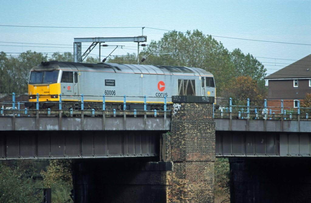 On the 28th October 2002 60006 ‘Scunthorpe Ironmaster’ in its special ‘Corus’ livery heads West along the North London line and crosses over the East Coast Main Line just outside Kings Cross. It lasted another 2 years before being withdrawn by EWS, although this was the only time I managed to capture it on film!