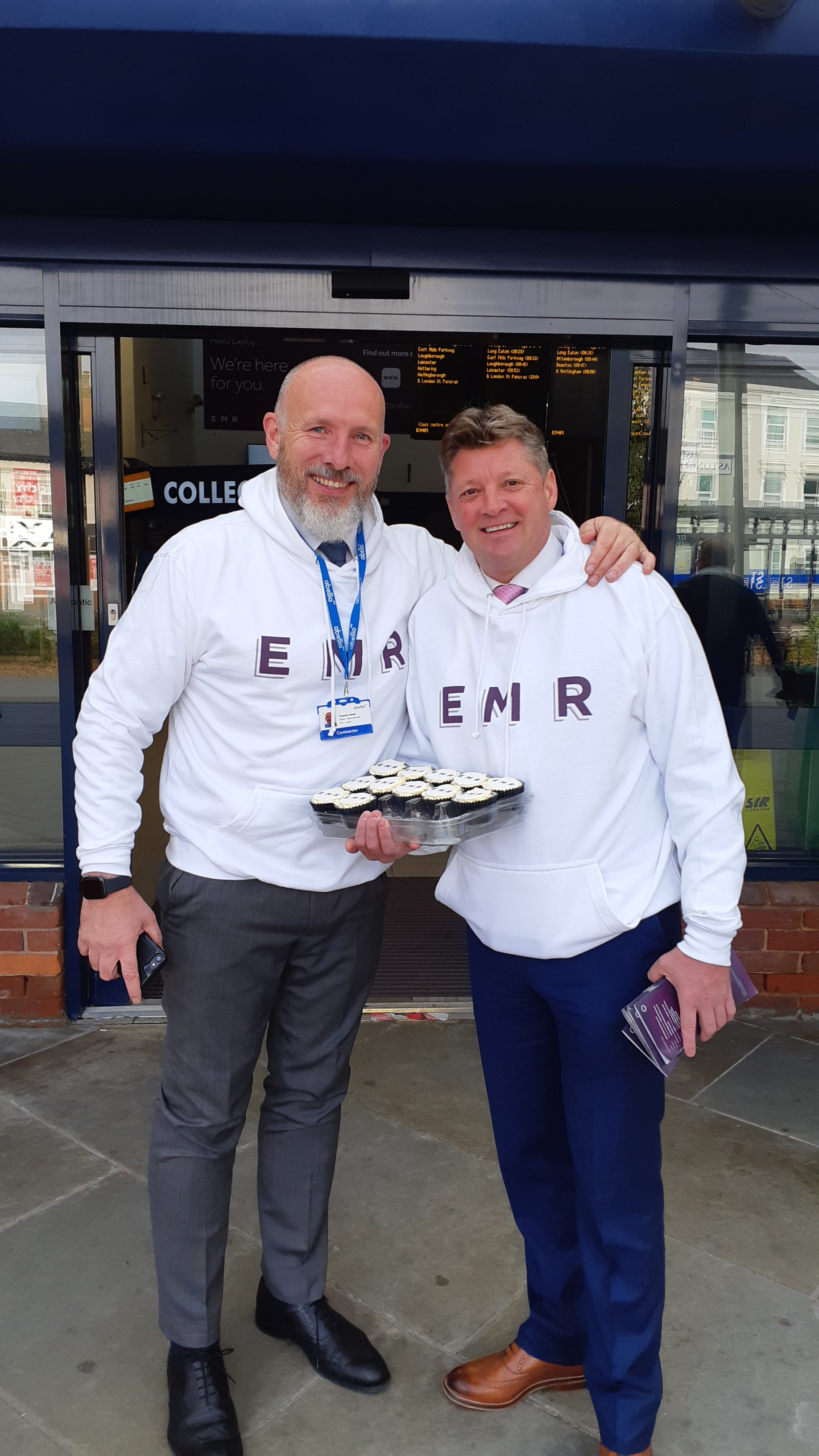 EMR are kicking off the new franchise by giving out free cupcakes to passengers at many of their major stations. Here’s some of the folks at Derby.