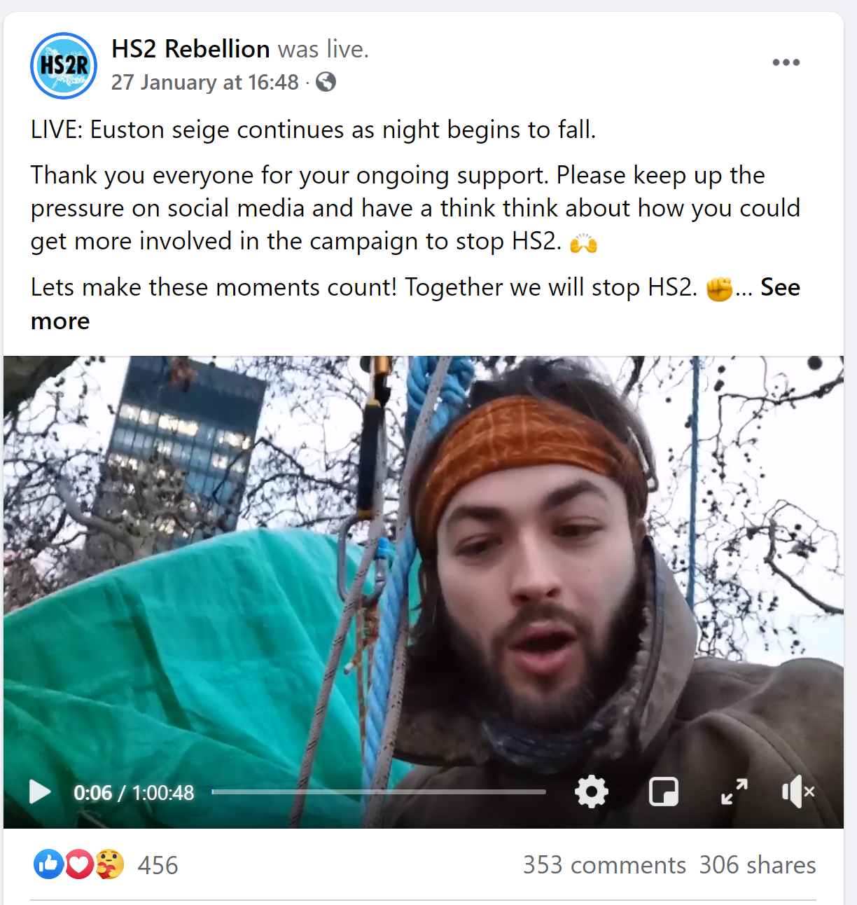 “Without Hs2 we won’t have the rail capacity we need to get modal shift from road/air to rail to cut #co2 emissions to tackle GLOBAL #ClimateChange. Stopping HS2 isn’t ‘green’ it’s the opposite. You’re literally doing the fossil fuel lobby’s job for it”.