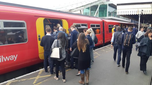 I’m on my way to Basingstoke after spending an interesting interlude at Clapham Junction observing SWR staff dispatching trains whilst dealing with the commuter hordes quickly and efficiently, keeping the railway running and getting people to work safely, despite near crush conditions on some of the services into Waterloo.