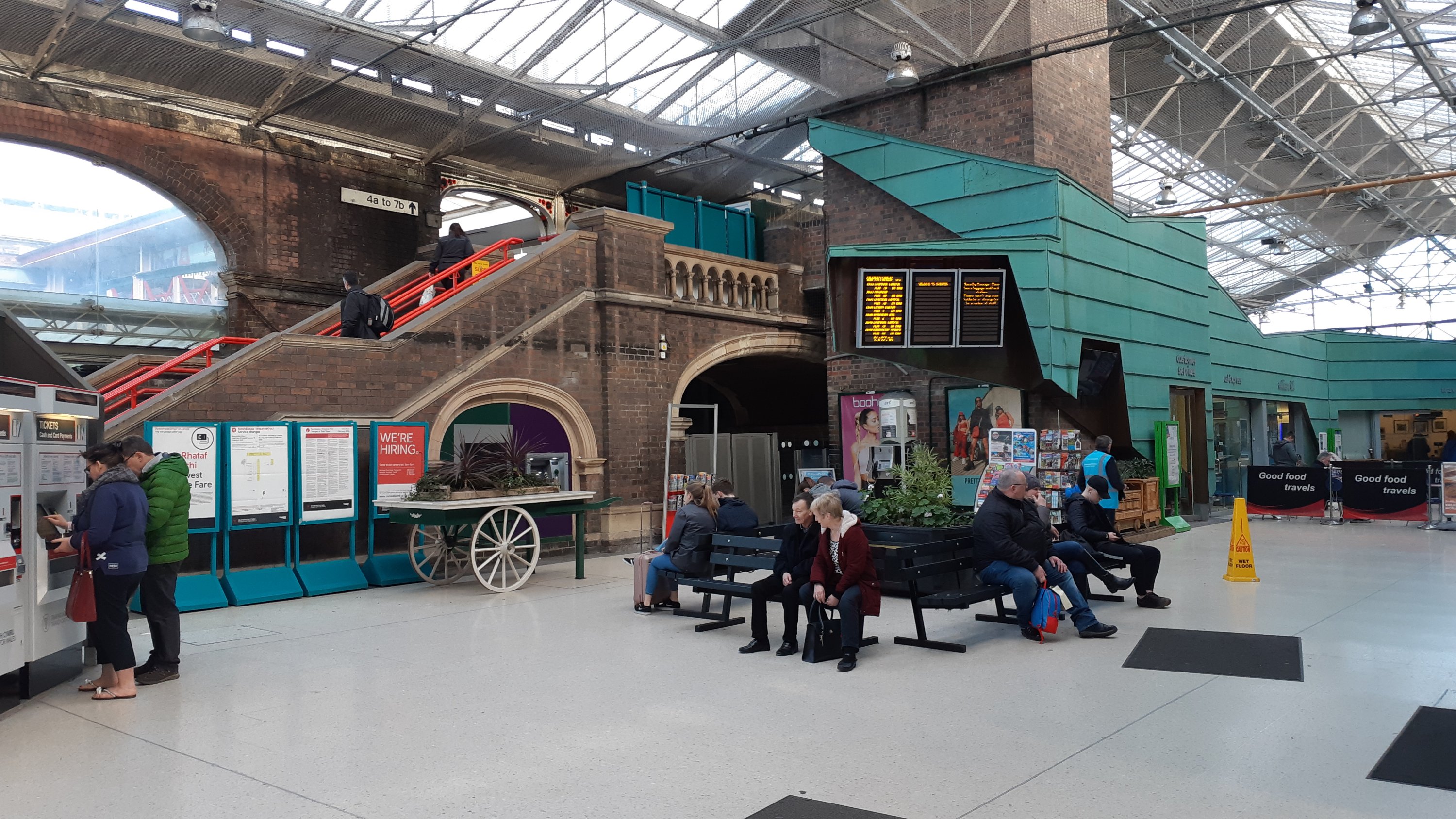 I was trying to pass through quickly but delays meant that it wasn’t to be. That said it was an interesting experience when I nipped through the barriers to grab a sandwich. The diminutive woman (and sole member of staff) crewing the barriers was trying to deal with a 6′ 4″ transvestite who was trying to attract attention (in every wrong way), as I crossed the concourse there was the obligatory drunk trying to make friends with any poor mug who’d sat down & was in the wrong place at the wrong time.