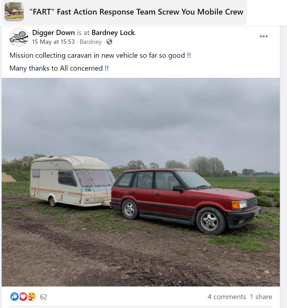 Are you having a laugh? Drive an old banger all the way to Cornwall? Have these ‘environmentalists’ never heard of public transport? You know, like trains, the very thing they’re protesting about and trying to stop? The irony that these ‘environmentalists’ are driving between protest camps in a fleet of old gas-guzzling, carbon-spewing jalopies is completely lost on them. I wonder how many of them are diesels too? Here’s another example. I wonder what the emmissions and MPG are for this old Range Rover which is another of the clapped-out vehicles they use (they were crowdunding the repair bill for it the other week). Now, what do you reckon the carbon footprint is of a round trip of circa 300 miles to pick up an old caravan is? Plus, after achieving nothing outside the G7 meeting in Cornwall, these ‘environmentalists’ are proposing to drive all the way to Glasgow to repeat their failure outside the COP26 conference. How many miles is London – Cornwall – Glasgow – London in a gas guzzler I wonder?