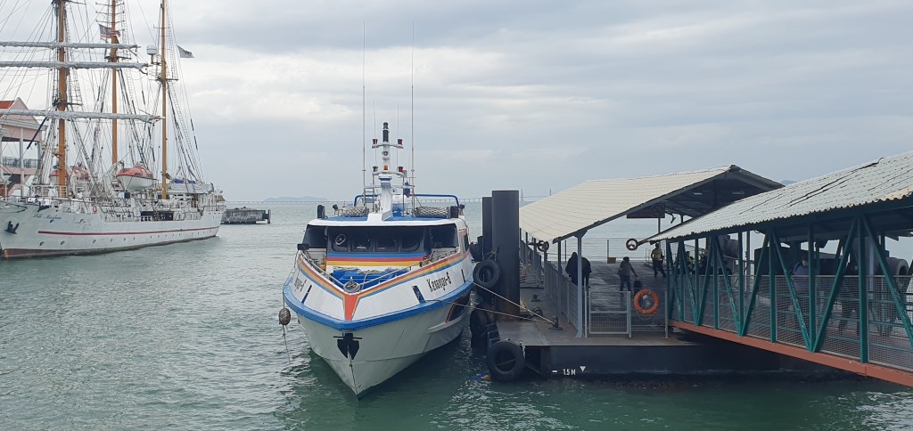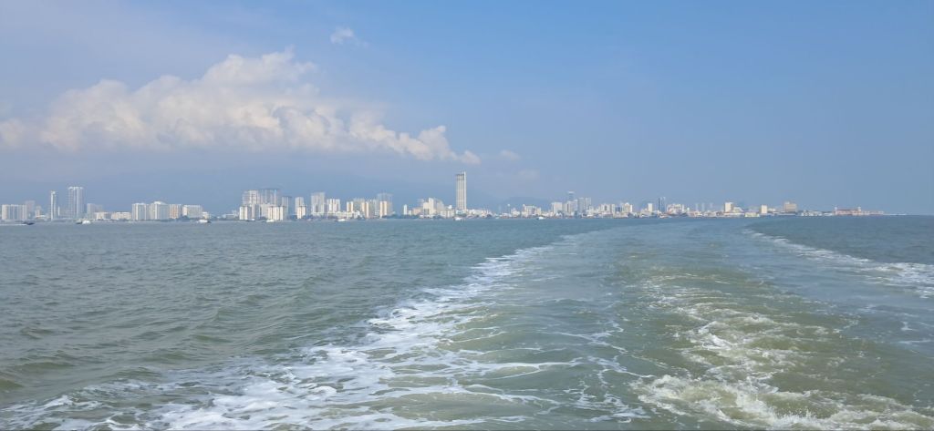 A classic view. One of the new ferries passes mine as it heads for Georgetown, with the Komtar tower in the background. This was the first ‘skyscraper’ on the island. When it opened in 1985 it was the tallest building in SE Asia!