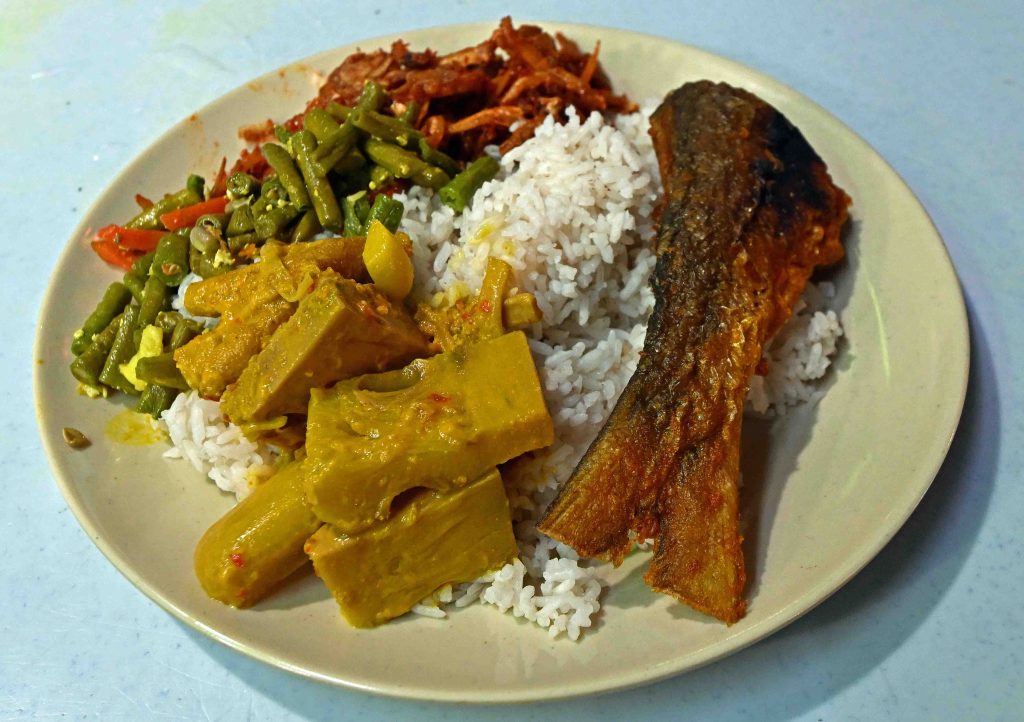 Back at ‘home’ I relaxed for a few hours (and edited more pictures) before nipping out to eat. I returned to a locally run stall where I ate last night. It’s got a fantastic array of meat, fish and veg. You just load your plate up of whatever takes your fancy. The cashier takes a look at what you’ve chosen and charges you accordingly (this cost me 12 ringgit, just over £2 but trust me – those plates ain’t small). I’d no idea what some of the stuff was – and half an idea with some, but nothing ventured, nothing gained. I love trying food just for the hell of it. Here’s my plate.