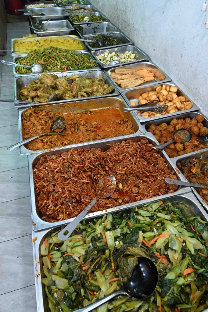 Talk about spoilt for choice. Oh, there’s more food lining the opposite wall, but a lot of that is varieties of fish-head curry!