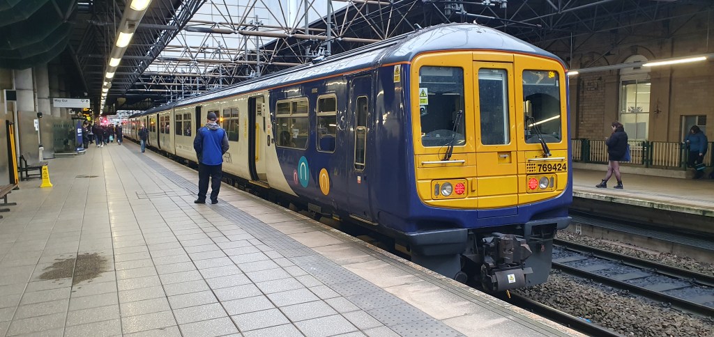 Now I’m on the first train of the day, the 05:59 to Leeds. This is a busy 3-car – already half full, which isn’t bad for this time of day.