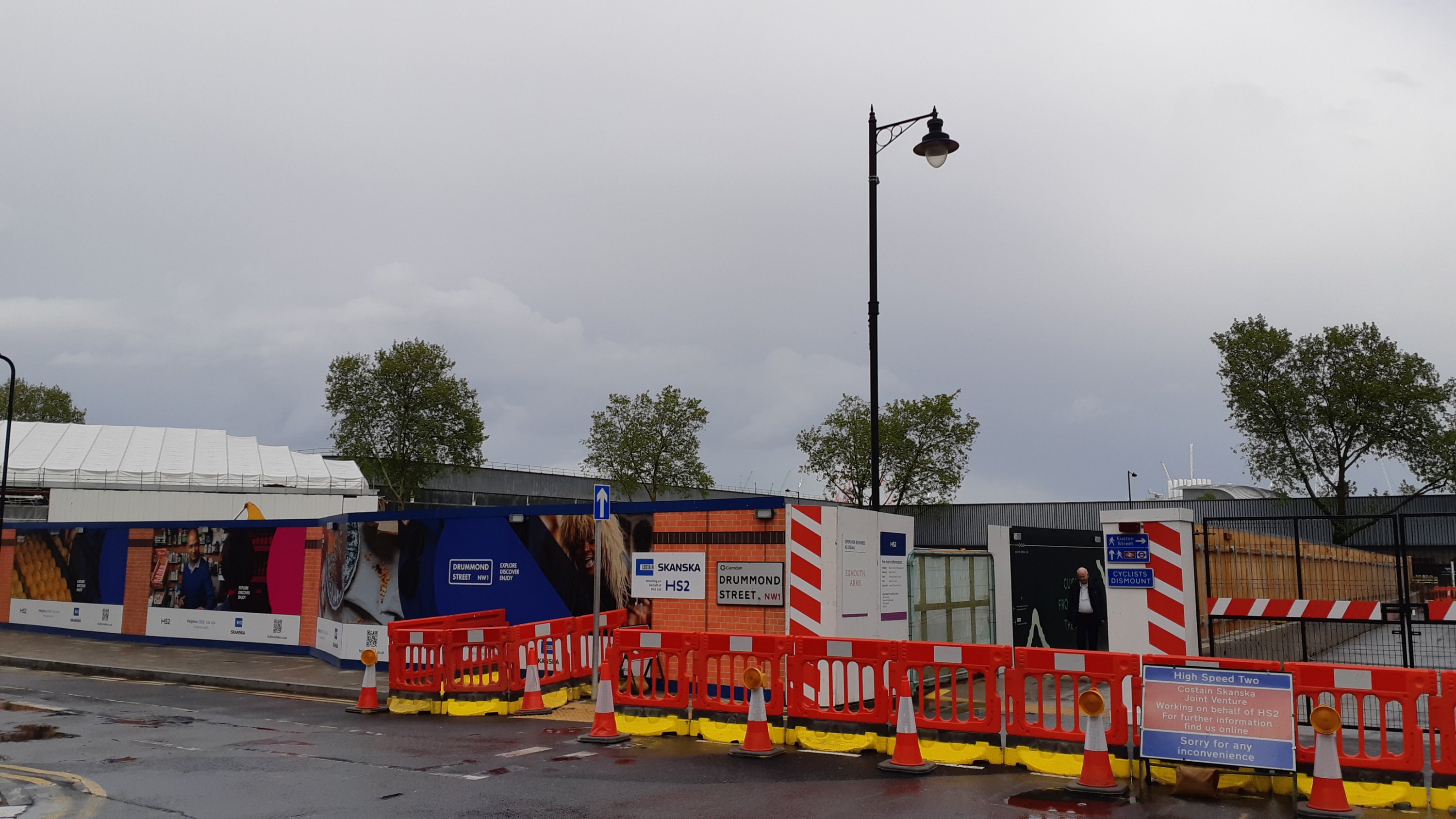 Whilst I was here I bumped into a rather sad little StopHs2 demonstration outside the Euston Tap. Apparently, a couple of people had ended up here after walking the length of the Phase 1 route. A tiny group of no more than a couple of dozen folk,including Joe Rukin and the inflatable elephant, some paid lobbyists from the ‘Taxpayers Alliance’ and a trio of ‘Extinction Rebellion’ placard wavers were here to greet them and try to drum up media interest. Needless to say, they were vastly outnumbered by the people wearing Hs2 high vis who are gainfully employed on the project! It was all rather farcical. The genuine protesters (not paid lobbyists, media or hangers on) were almost exclusively retired. When you consider that 6.5 million folk live on the route of Hs2 and this (in one of their supposed strongholds, Camden) was the best they could do…