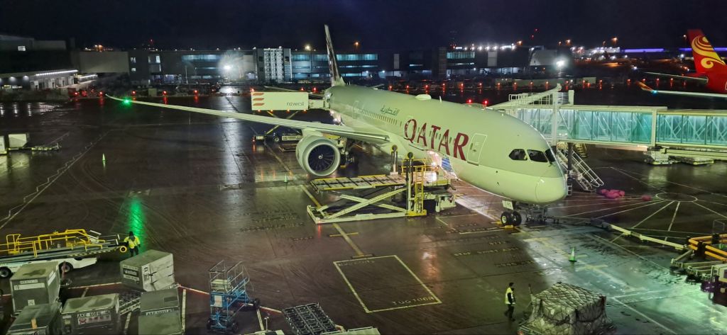 Now we’re killing time until our flights called. We’ll be boarding a Boeing 787-9 ‘Dreamliner’ for the 6hr 50min flight to Dohar. Hopefully, we’ll be able to get some sleep en-route as it’s going to be a long old day. I doubt I’ll have time to blog from Qatar. Our transit time’s an hour so I suspect we’ll be going straight to the gate to board our next flight. The next you’ll be hearing from us will be when we arrive in Jakarta tomorrow morning (07:05 local time).